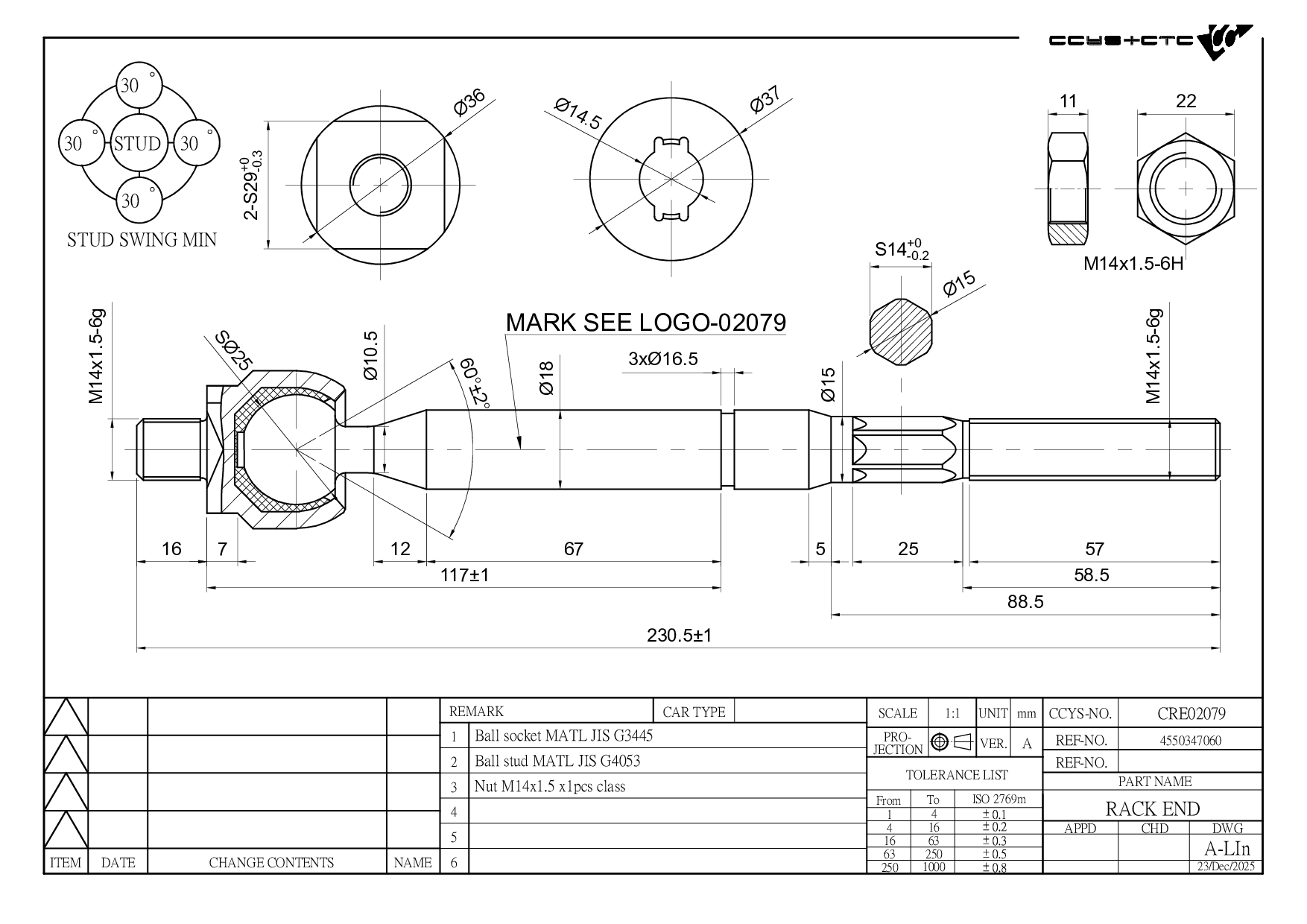 OE No. 45503-47060 / 45503-47070 / 45503-76020 / 45503-76030 / 45510-47060 / 45510-47070 / 45510-76010 / 45510-76020 / 45510-76030