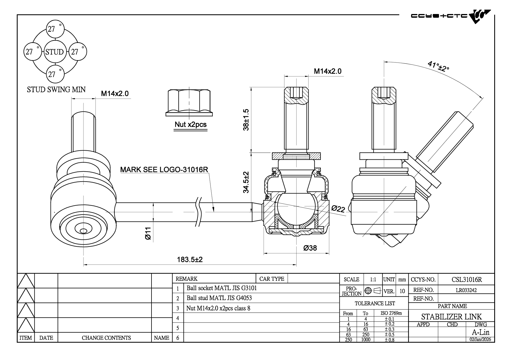 CSL31016R REAR RH( A= 184MM)